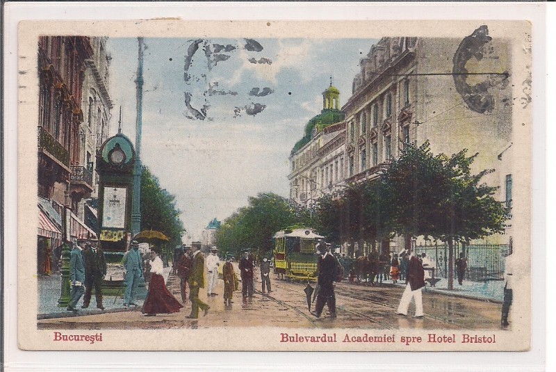 Carte postala circulata in anul 1922 Bucuresti - Bulevardul Academiei spre Hotelul Bristol