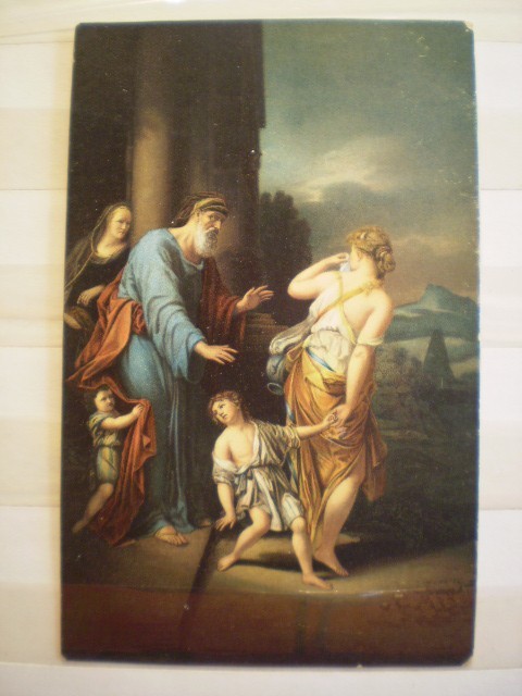 Carte postala cu tematica religioasa : Alungarea lui Hagar - Germania - Tipografia Stengel &Co. - Dresda - dupa 1920 - necirculata