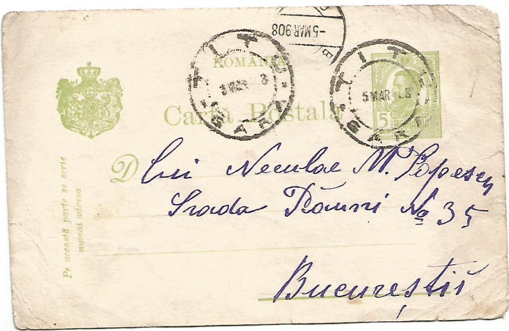 carte postala -Ferdinand 5 bani marca fixa tipografiate -1908