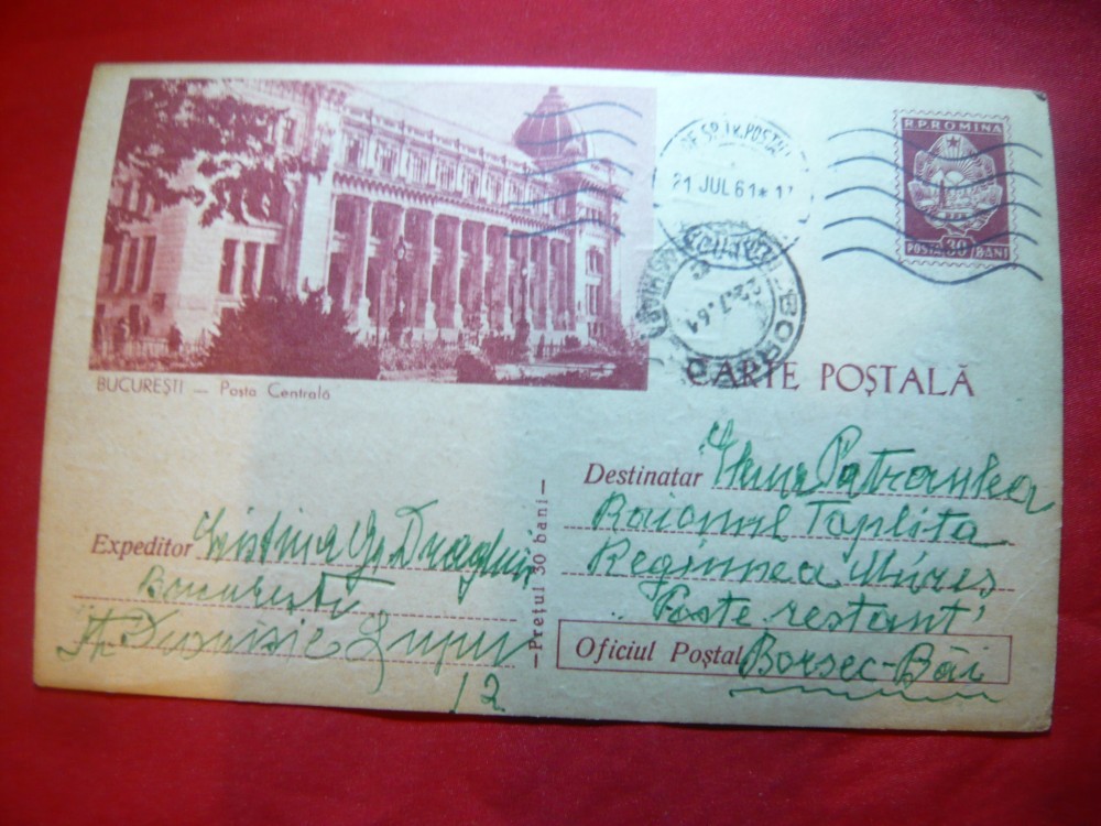 Carte Postala Ilustrata -Bucuresti - Posta Centrala - circulat 1961