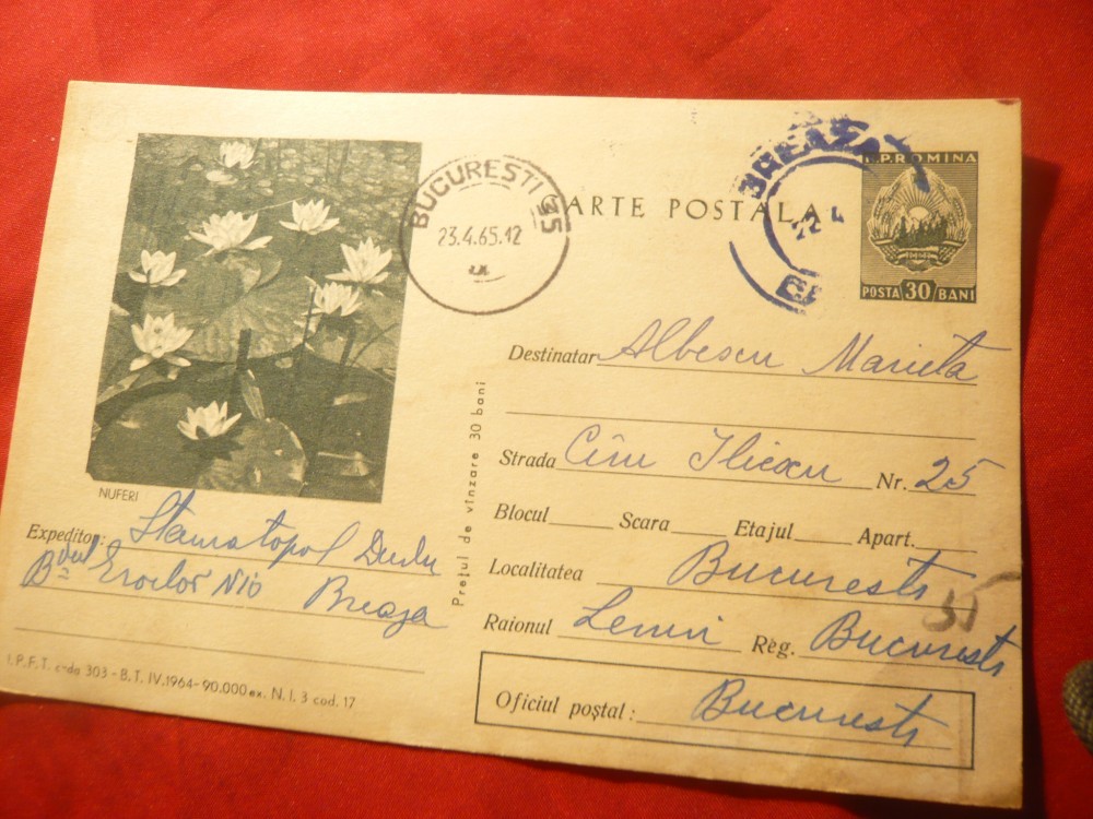 Carte Postala ilustrata -Nuferi ,cod.303/ 1964