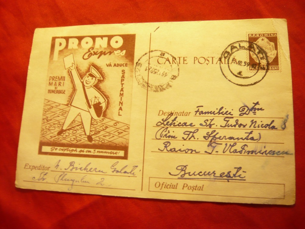 Carte Postala Ilustrata - Prono-Expres circulat 1959