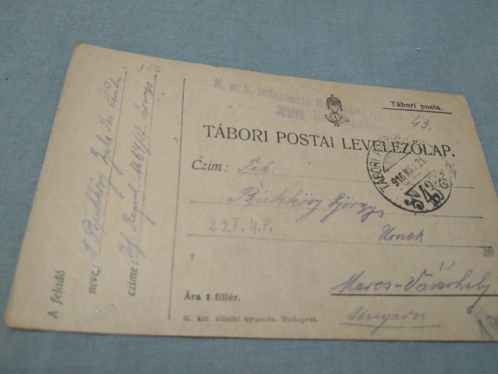 CARTE POSTALA MILITARA 1916 CIRCULATA LA TARGU-MURES