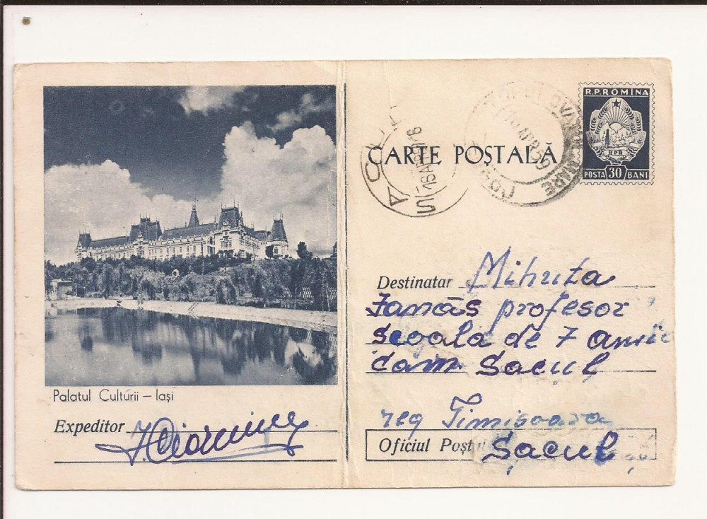Carte Postala - Palatul Culturii Iasi , Circulata 1959