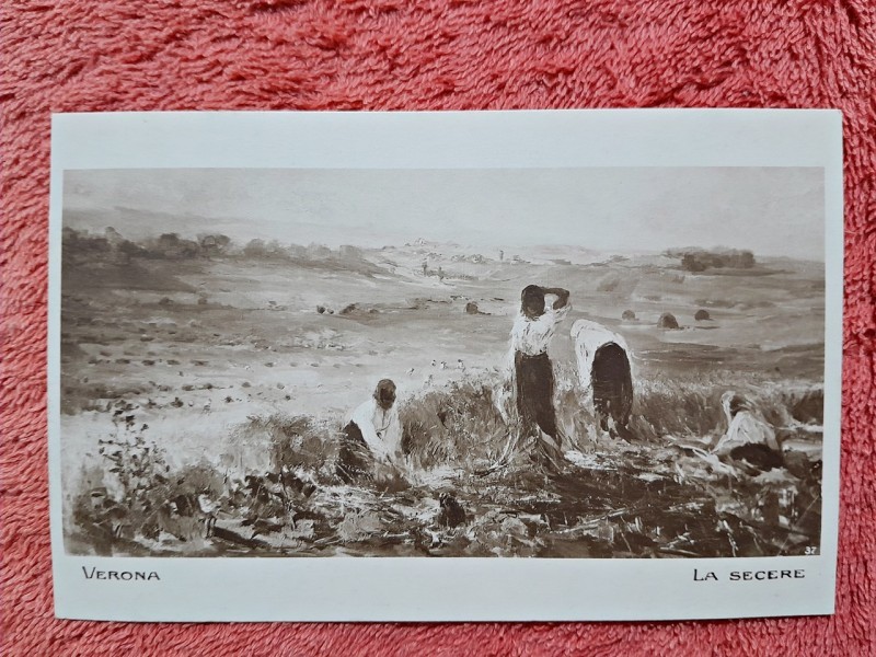 Carte postala, reproducere dupa tabloul La Secere/Verona