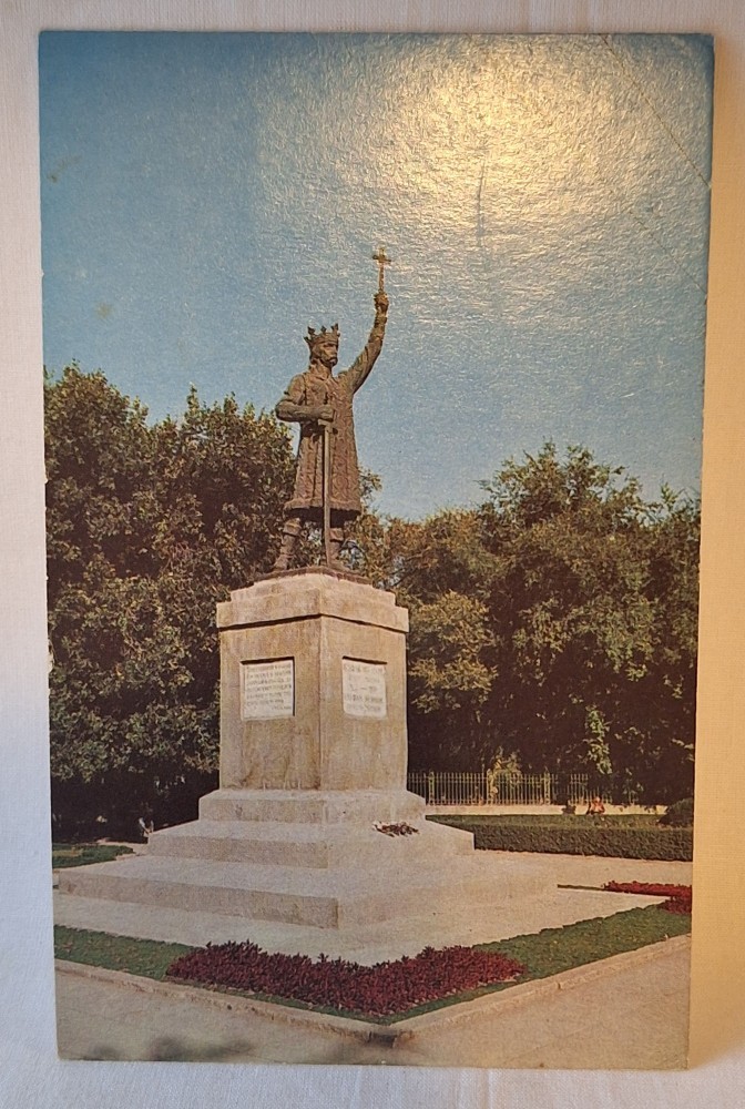 Carte Postala veche circulata, Statuia lui Stefan cel Mare - Chișinău