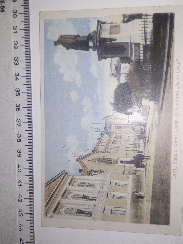 CARTE POSTALA VECHE - IASI STATUIA MIRON COSTIN SI INSTITUTUL SACRE COEUR 1919