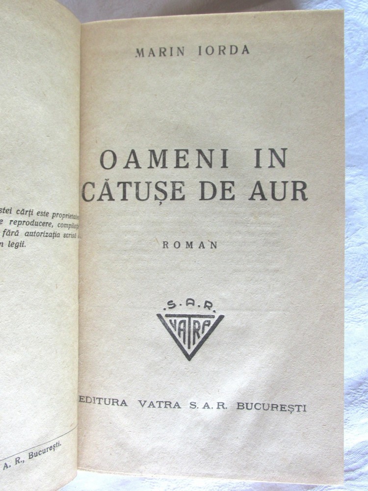 Carte veche: "OAMENI IN CATUSE DE AUR", Marin Iorda, 1945. Cartonata (legata)