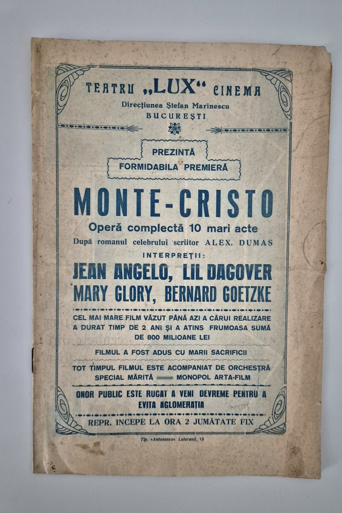 Carte veche Program Cinema Lux Bucuresti Pliant