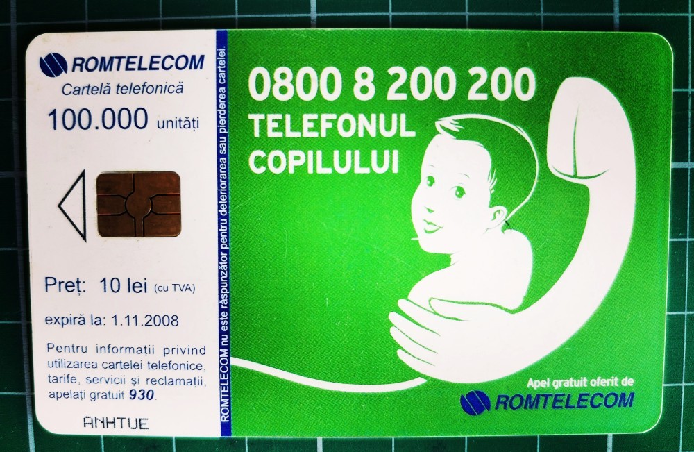 Cartela telefonica Romtelecom 10 lei Abstract Telefonul Copilului ANHTUE 100.000 unitati expira 01.11.2008 Suna cand ai nevoie de protectie !