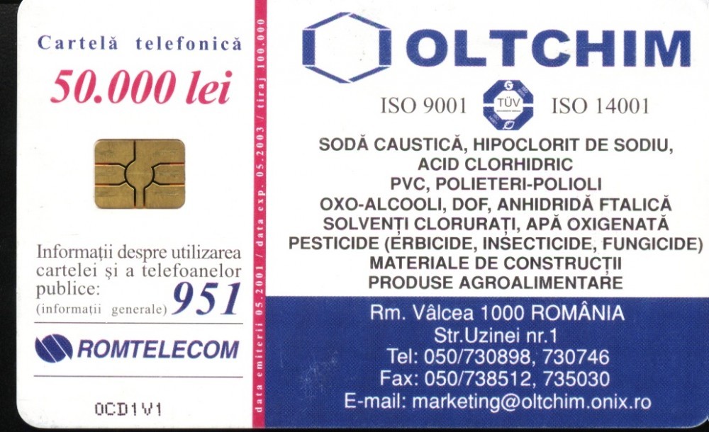 Cartela telefonica Romtelecom OLTCHIM, Rom 101a.Emisa05.2001.Stare conform foto.
