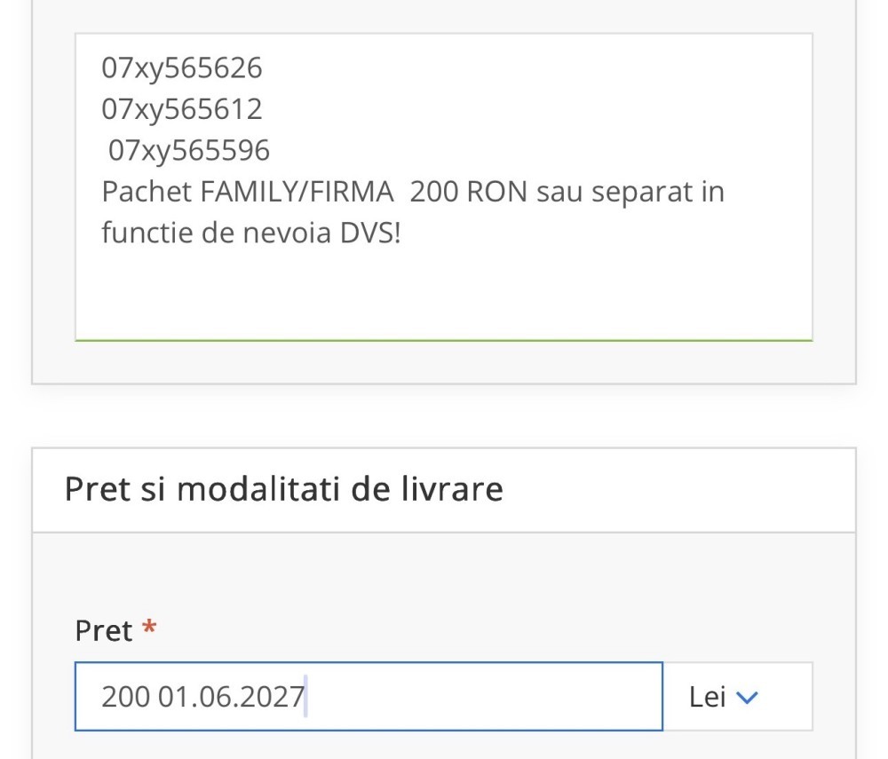 07xy565626 07xy565612 07xy565596 Pachet FAMILY/FIRMA 200 RON sau