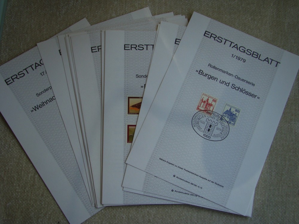 Am spre vanzare pliantele Prima Zi - Ersttagsblatt Berlinul de Vest 1979 - AN COMPLET - 17 pliante in stare foarte buna - ca NOI. Preturile sunt fixe indiferent de cantitate. NU TRIMIT COLET CU VALOARE MAI MICA DE 30 LEI EXCLUSIV COSTURILE DE EXPEDIERE. Ofer si rog seriozitate. Mentionez ca am si ani completi Germania si in plus, pliante deparaiate ani diferiti Germania si Berlin. Le veti gasi in licitatiile mele.