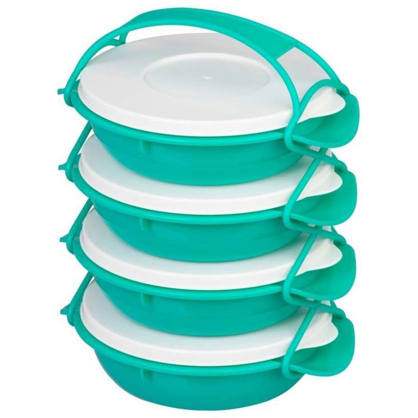 Caserola alimente, plastic, etansa, verde, 4 compartimente, 4x1 L, 22.4x20.5x29.5 cm, MagicHome