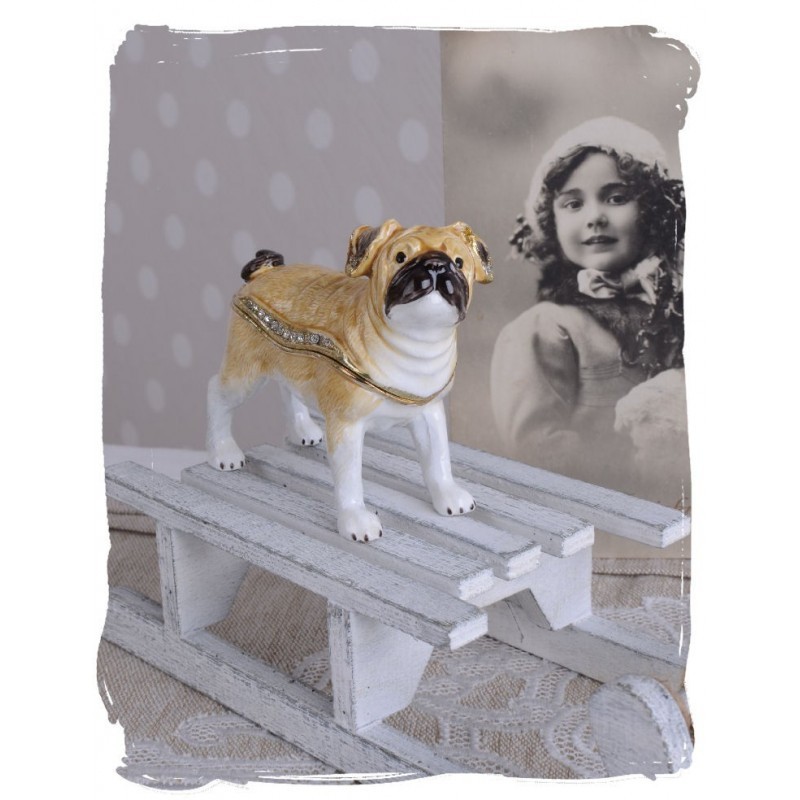 Caseta de bijuterii din metal emailat cu un catel mops CL221