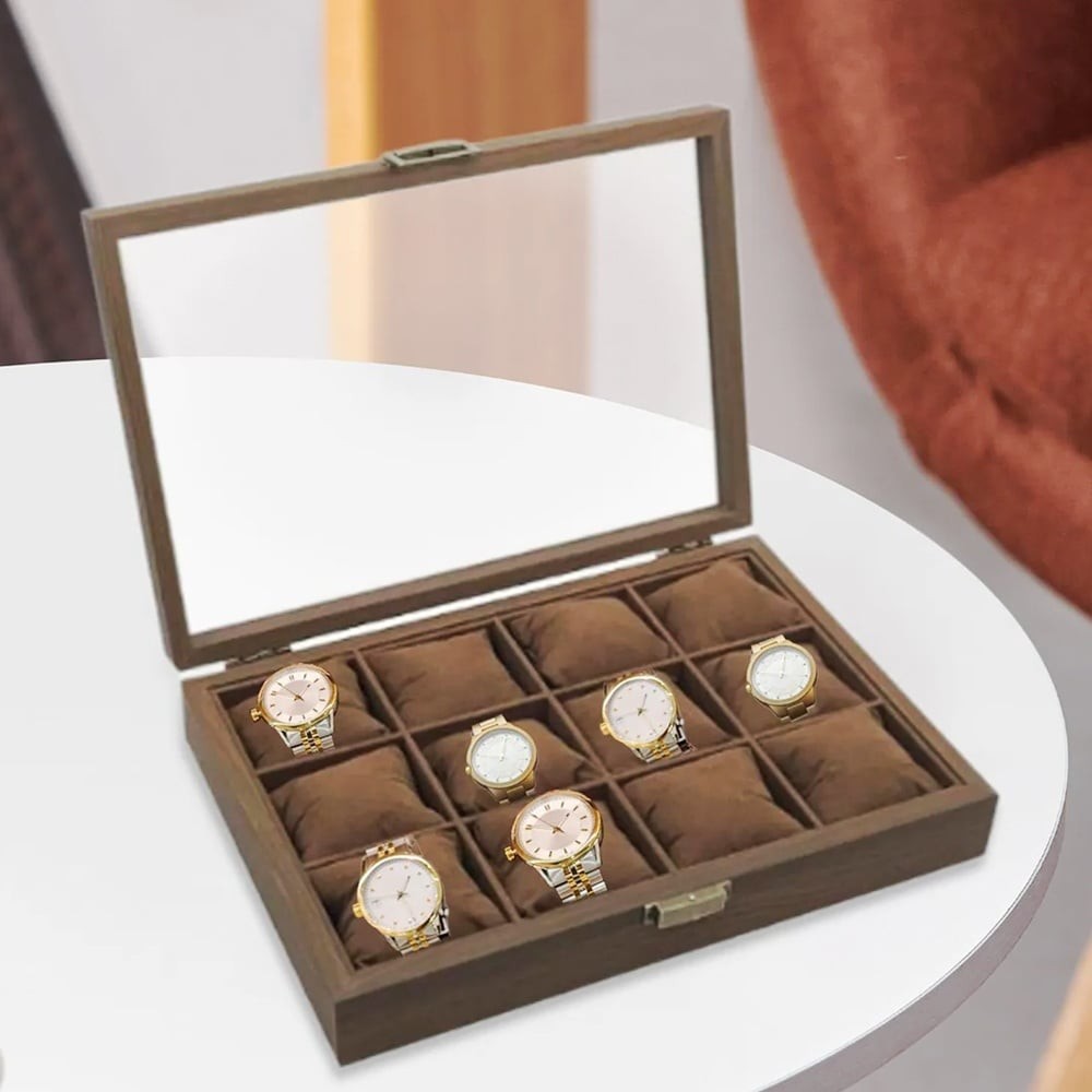Cutia pentru 12 ceasuri are un design extrem de elegant,