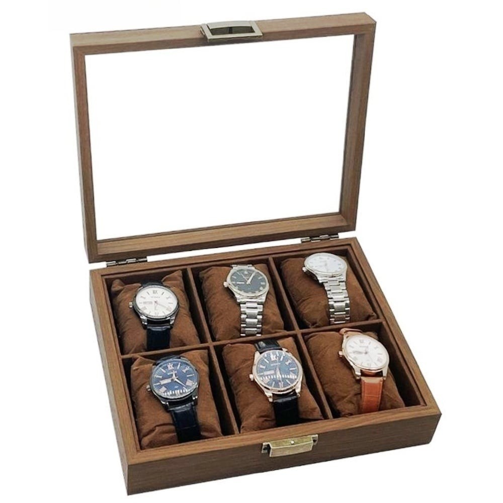 Cutia pentru 6 ceasuri are un design extrem de elegant,
