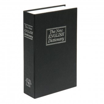 Caseta de bani portabila in forma de carte, dimensiuni 180x115x55mm.