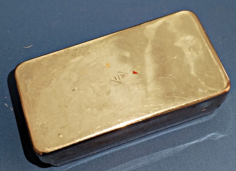 Casoleta inox vintage sterilizare depozitare transport seringi sau mic instrument chirurgical 10cm/5cm/3.5 cm stare conform foto stantat ITM in romb