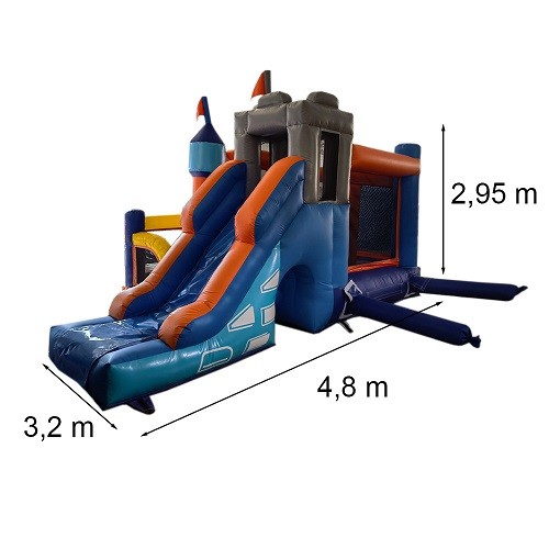 Acest castel gonflabil este o alegere perfectă pentru orice eveniment de familie sau o petrecere pentru copii. Castelul gonflabil cu tematică de castel măsoară 4,85 x 3,2 x 2,95 metri, oferind suficient spațiu pentru ca cei mici să se distreze, să sară, să se joace și să se bucure de aerul curat.