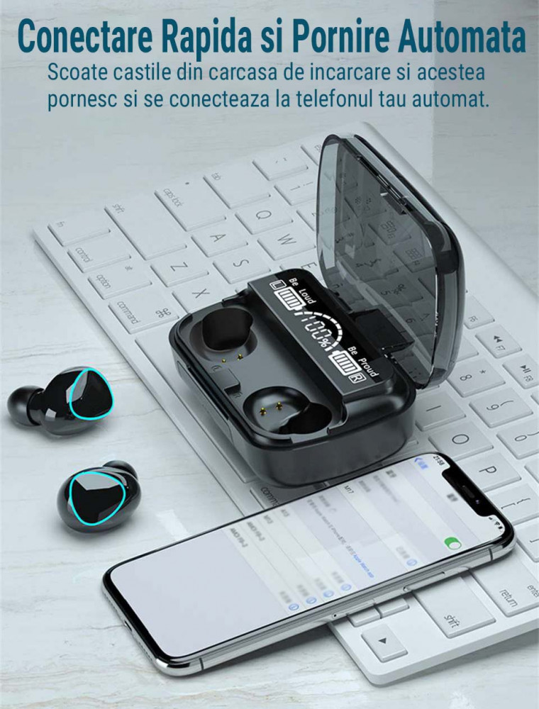 - Capacitatea bateriei: 2000mAh pentru carcasa castilor;