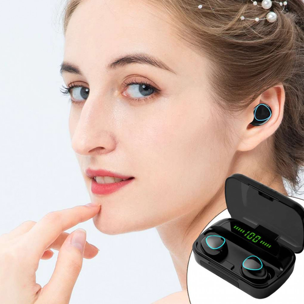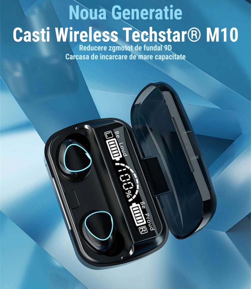 Casti Smart Techstar® M10, Wireless, Bluetooth V5.1, Touch, Display Digital, 2000mAh, pentru iPhone Xiaomi Huawei, Negru