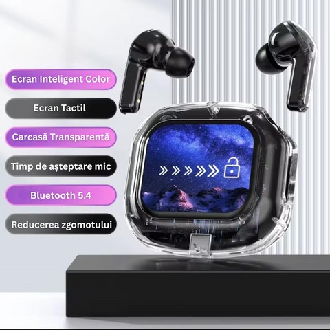 🔊 Căști Wireless Bluetooth 5.4 cu Ecran Tactil și
