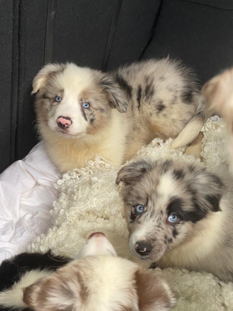 Vand 4 cateluse border collie, doua alb negru, doua red merle, nascute in 18 noiembrie 2019, cu carnet de sanatate, doua deparazitari si doua vaccinuri, mama alb negru, tata blue merle. Pret 800 lei fix pentru cele alb negru si 1200 lei fix pentru cele red merle. Catelusele stau in casa de cand s-au nascut, sunt foarte bine ingrijite si sunt superbe. Informatii suplimentare telefon 0742171018.