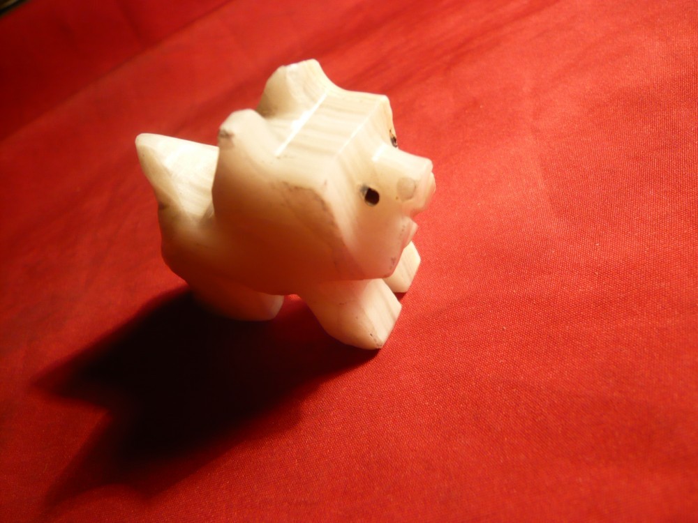 Catelus- Bibelou- sculptat in piatra semipretioasa , Dim. = 6 x 4,5 cm
