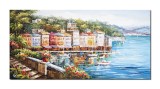 Tablou GIGANT lacul Como pictat manual , Colt de rai, 150x100cm ulei pe panza in relief Valentin Pop
