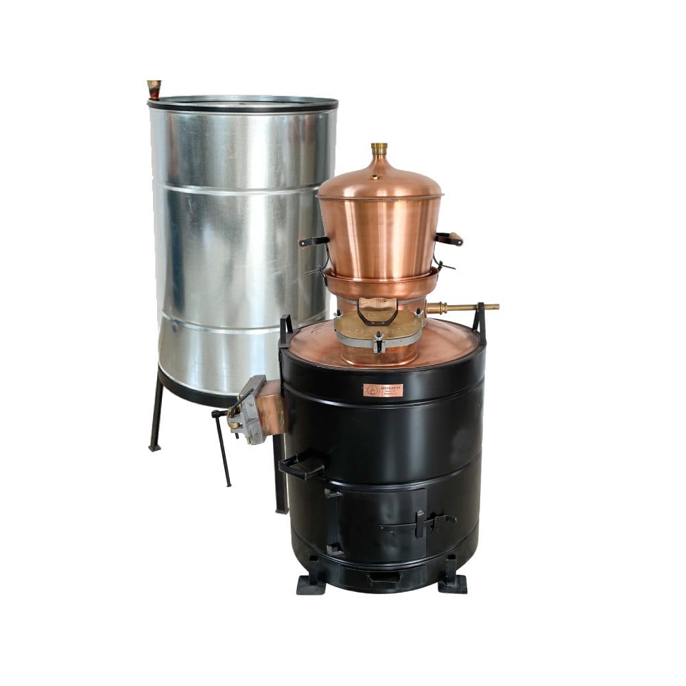Setul contine: Cazan de tuica 120 litri cu amestecator incorporat si Termometru - Racitor( 320 litri ) cu spirala din cupru, Teava de legatura, Focar pentru lemn.