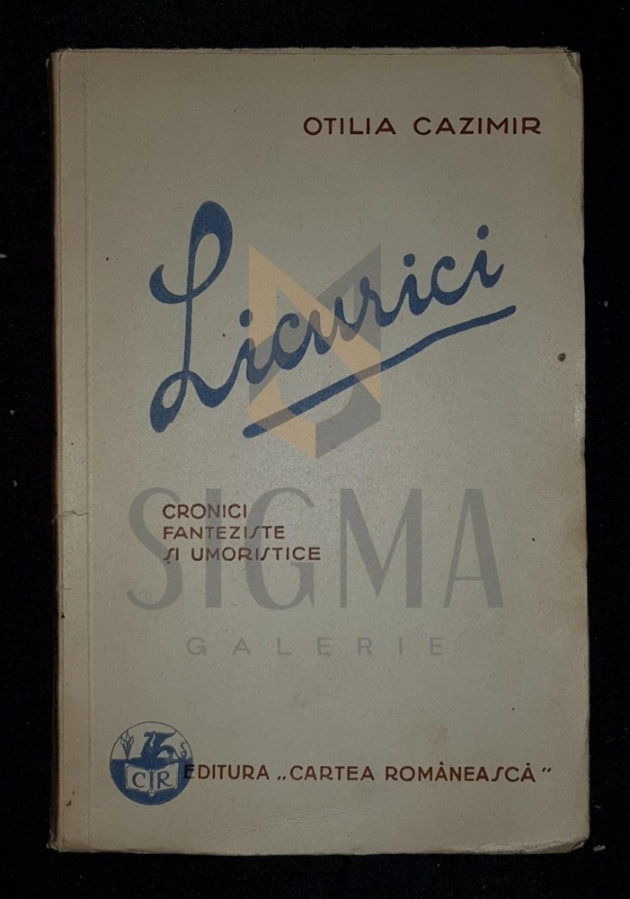 "LICURICI", Cronici Fanteziste si Umoristice de OTILIA CAZIMIR, 1930, Bucuresti, Exemplar Complet, In Format Mediu (Brosat, 92 pagini, Dimensiuni: 19,5 x 13cm.), In Coperti Vechi, Originale de Editor, Stare foarte Buna (Vezi Foto !).