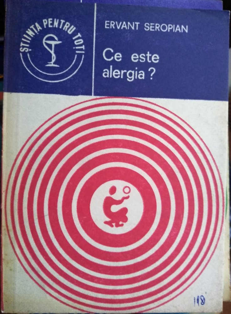 Ce este alergia ?, de Ervant Seropian, editura Științifică și enciclopedică, București, 1981, 112 pag. Colecția Știința pentru toți. Pentru București fac predare personală. Pentru alte localități 11 ron taxe postale cu ramburs sau 7 ron colet simplu cu plata prin virament bancar. Pentru produse comandate în valoare de 60 ron trimit gratis colet simplu sau 7 ron cu ramburs, iar la 110 ron comanda expediez gratis cu ramburs.