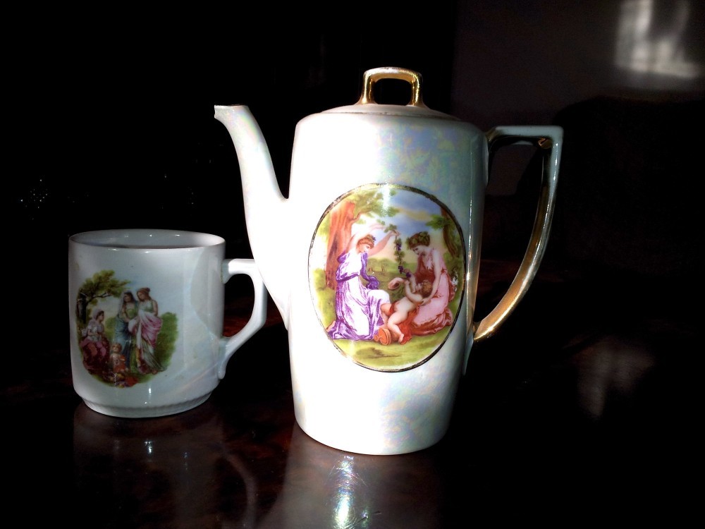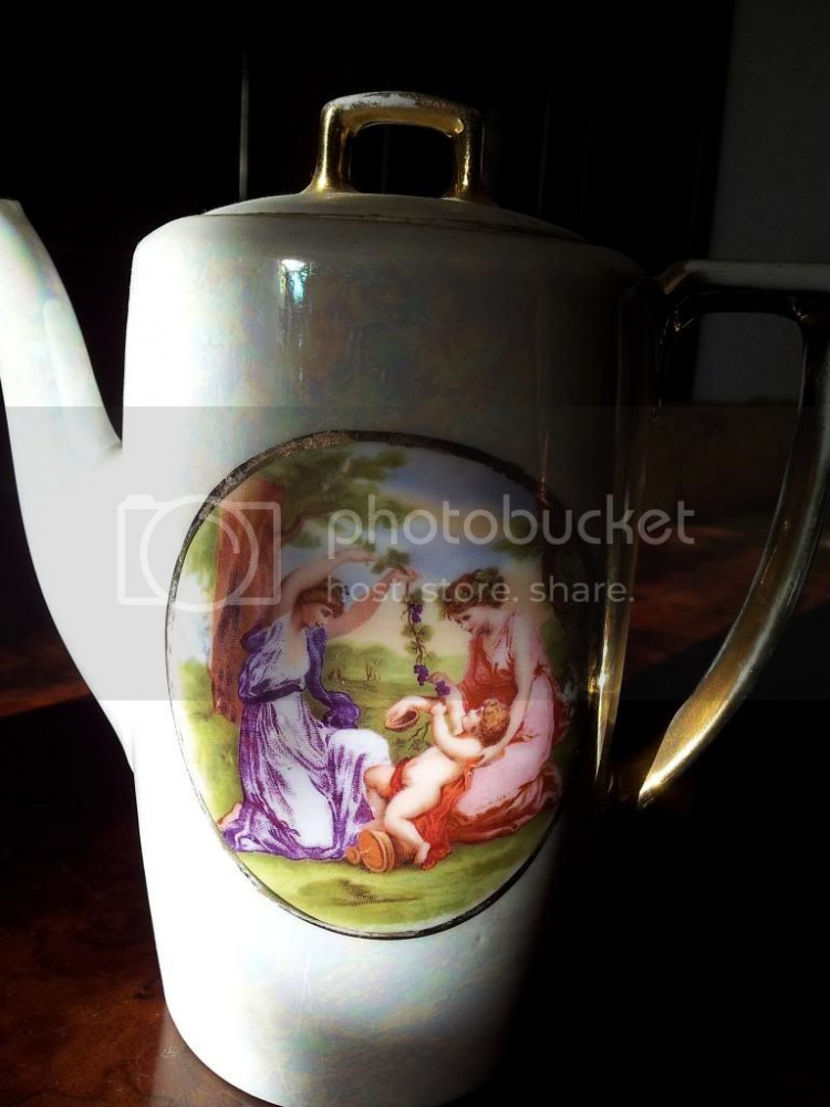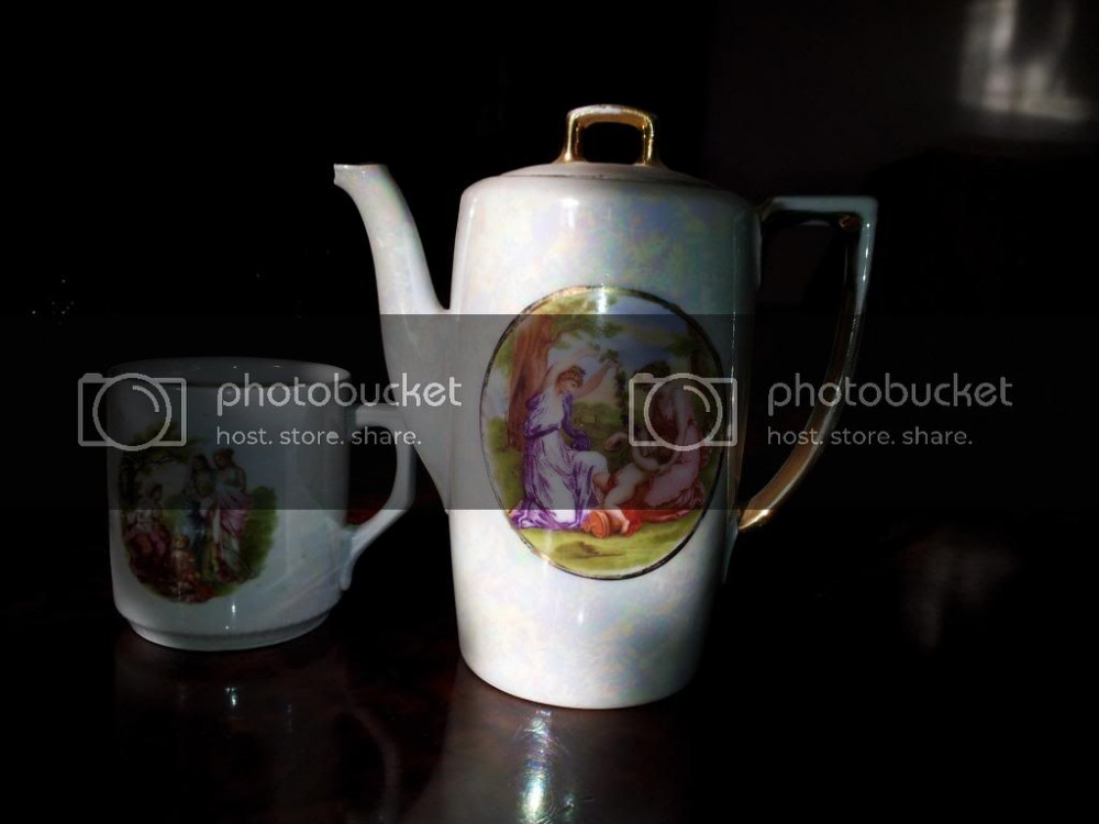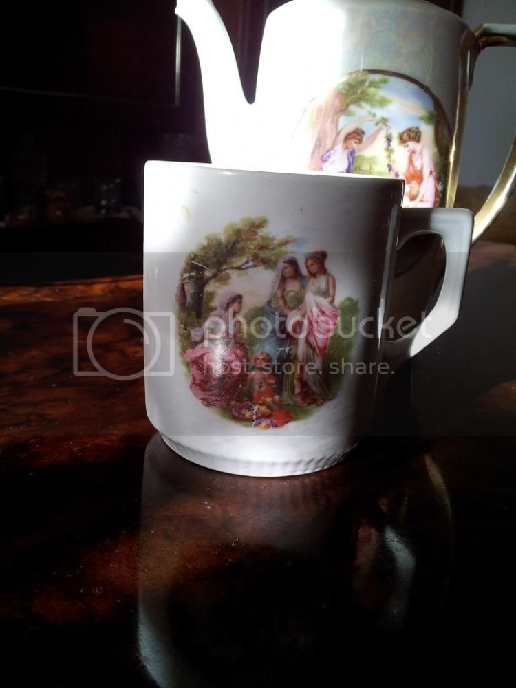 vechi, din portelan pictat. Prezinta o "stirbire" care se poate