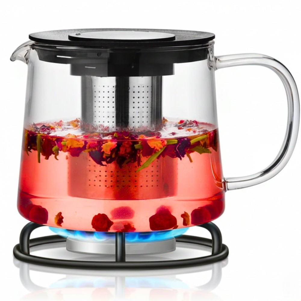 Ceainic sticlă cu infuzor inox Koken, 1500 ml, rezistent la temperaturi, pentru plită și cuptor microunde, compatibil mașina de spălat vase, transpare