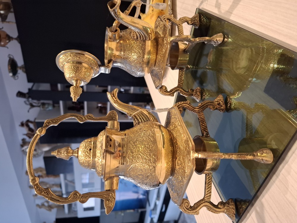 Ceainicuri din bronz gravate.