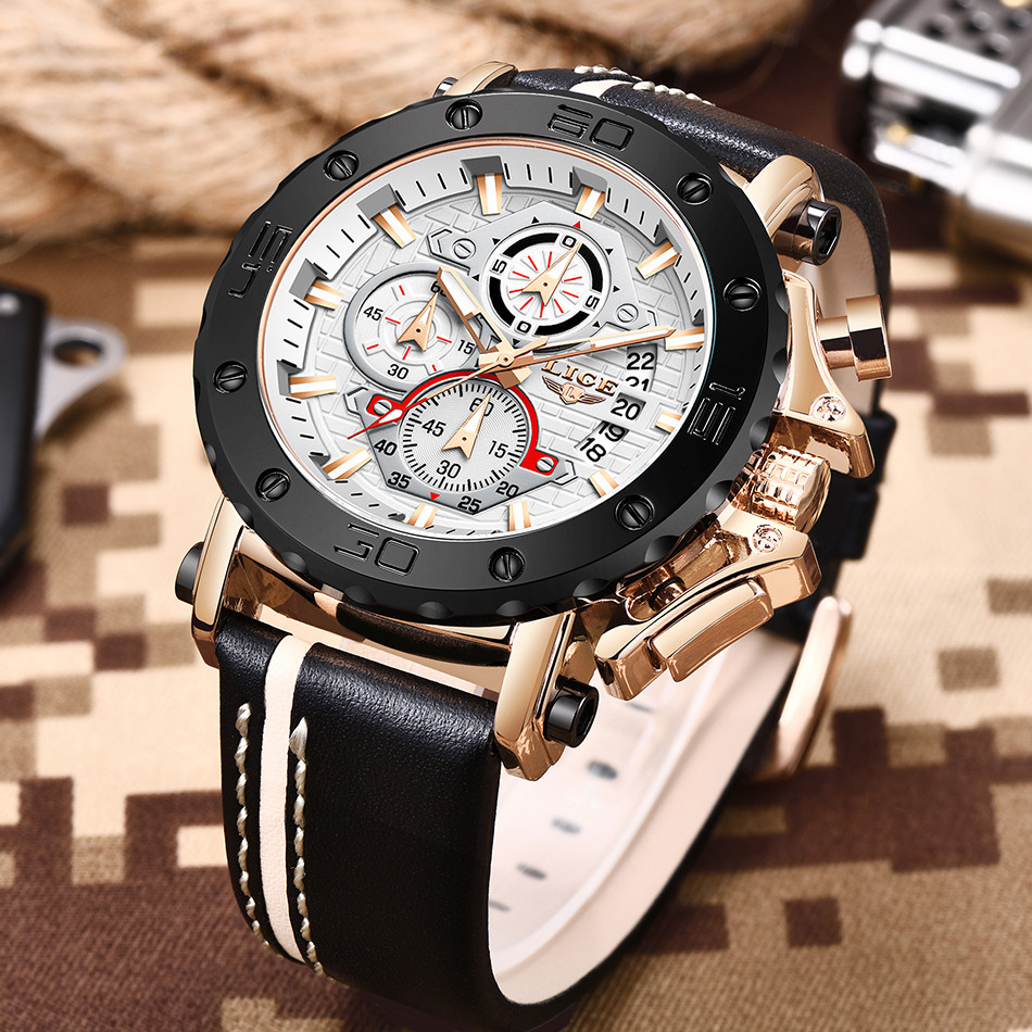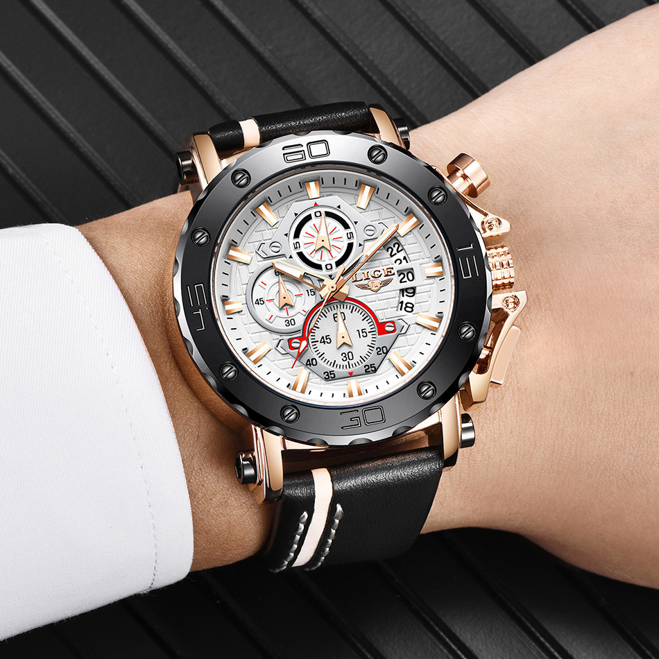 Ceas barbatesc de mana Lige Elegant Cronograf Quartz Analog Luxury Piele