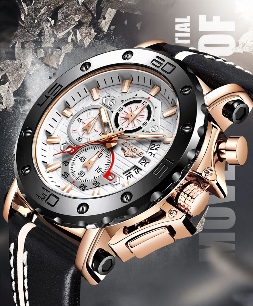 - 1x Ceas barbatesc de mana Lige Elegant Cronograf Quartz Analog Luxury Piele