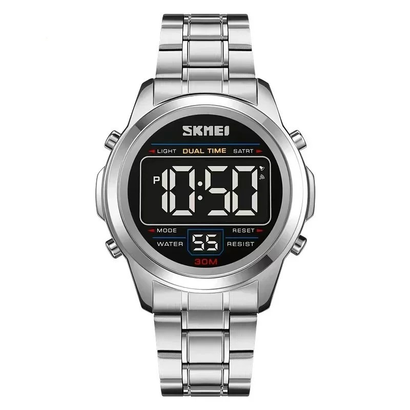 Ceas barbatesc de mana Skmei Digital Sport Alarma Data Cronograf Argintiu