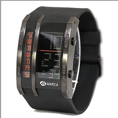 MAREA UNISEX ALARM CHRONOGRAPH WATCH BrandMarea Packaging Case width approx. 35mm Case depth approx. 14mm Gender Unisex Dial Colour LCD Case Material Stainless Steel Strap type Rubber Strap colour Black Water resistancy Water resistant Date Yes Clasp type Special buckle Movement Quartz (battery) Chronograph Yes Alarm Yes Backlight Yes MPNB35048/2