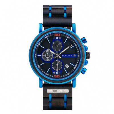 Ceas barbati Bobo Bird Lemn Cronograf Afisare data Quartz Analog Casual Elegant Albastru