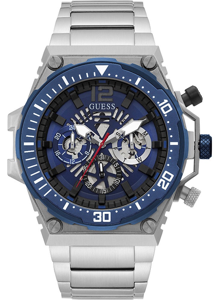 Ceasul de mana Guess pentru barbati are mecanism quartz si este potrivit stilului casual. Carcasa este din inox si are diametrul de 48 mm iar cureaua este confectionata din inox. Cadranul are display analog si geamul foarte rezistent realizat din cristal mineral cu etanseitate (rezistenta la apa) de 5 atm.