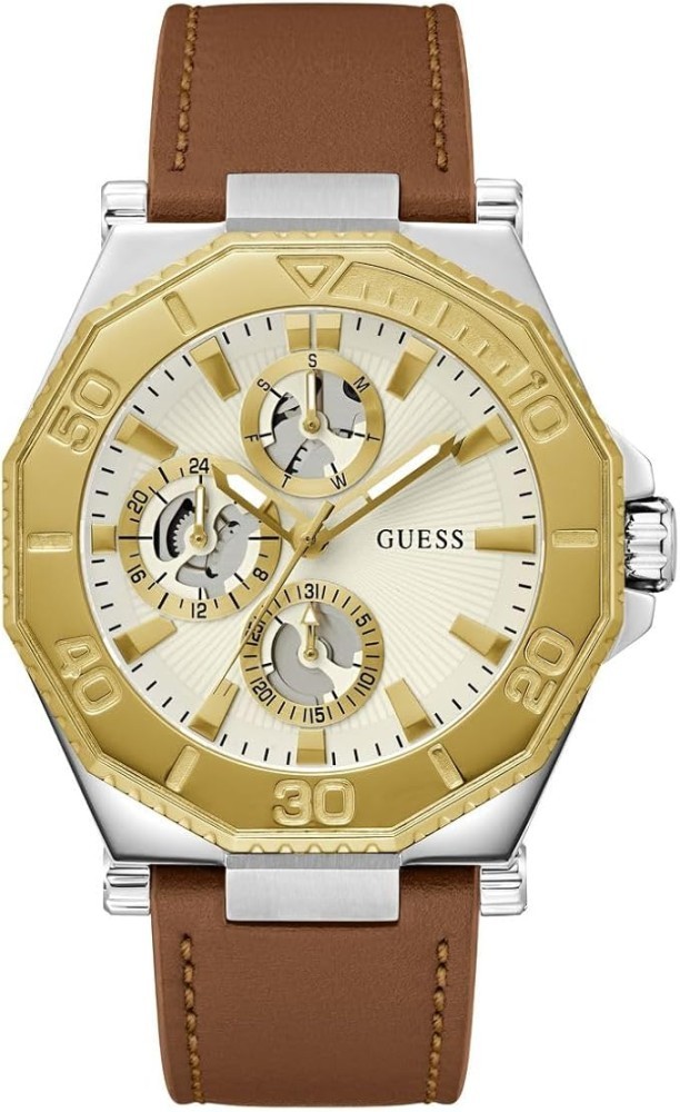 Ceasul de mana Guess pentru barbati are mecanism quartz si este potrivit stilului casual. Carcasa este din inox si are diametrul de 46 mm iar cureaua este confectionata din piele naturala. Cadranul are display analog si geamul foarte rezistent realizat din cristal mineral cu etanseitate (rezistenta la apa) de 5 atm.