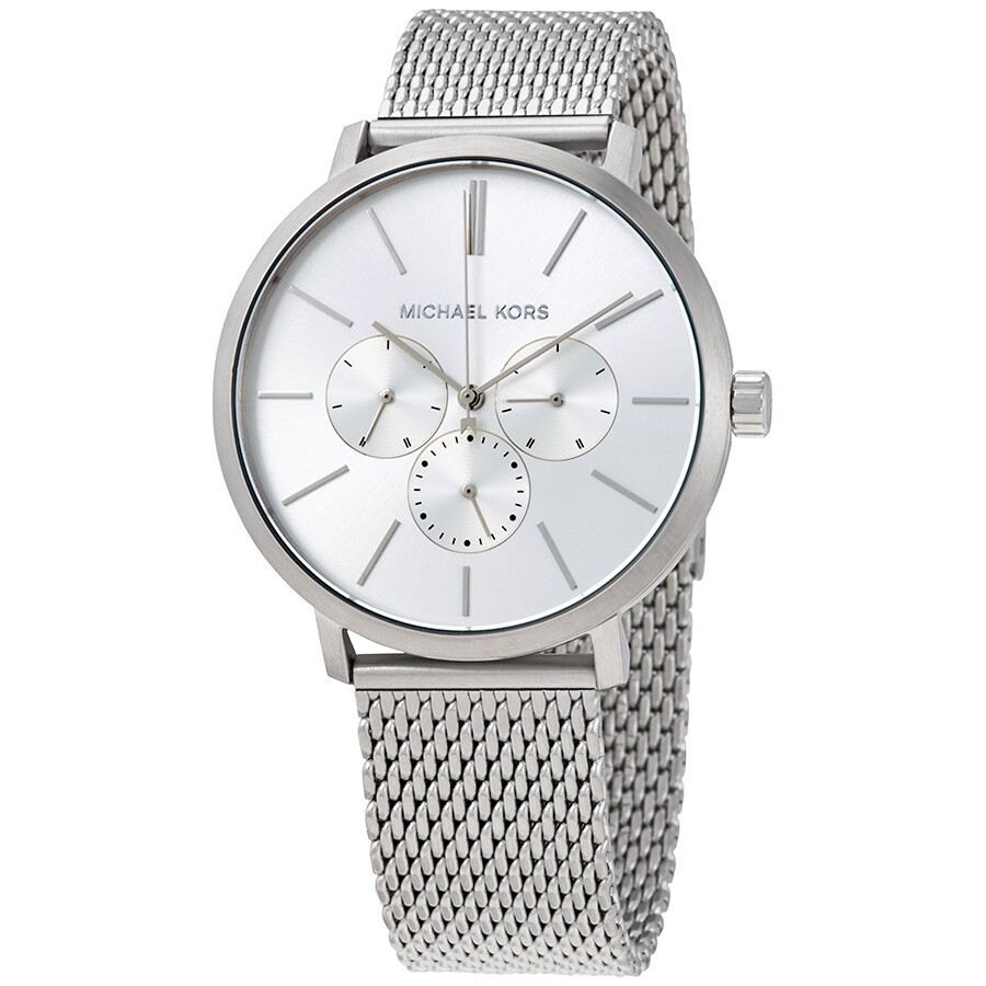 Ceasul de mana Michael Kors pentru barbati are mecanism quartz si este potrivit stilului casual. Carcasa este din inox si are diametrul de 42 mm iar cureaua este confectionata din inox. Cadranul are display analog si geamul foarte rezistent realizat din cristal mineral cu etanseitate (rezistenta la apa) de 5 atm.