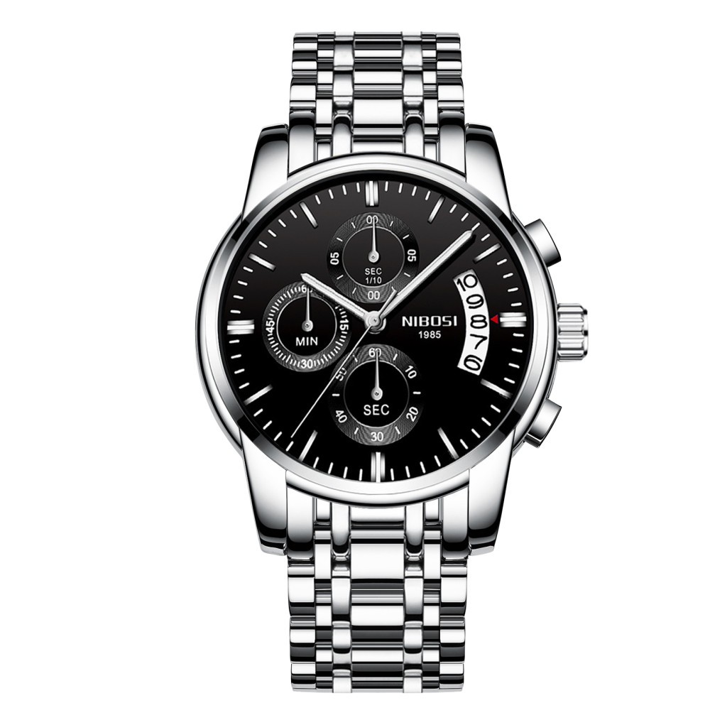 Ceas barbati Nibosi Data Otel Analog Mecanism Quartz Argintiu