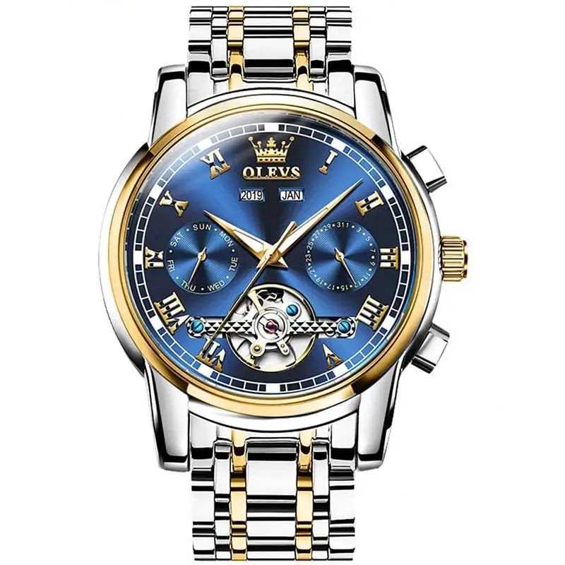 Ceas barbati Olevs Data Mecanic automatic Albastru Argintiu Otel