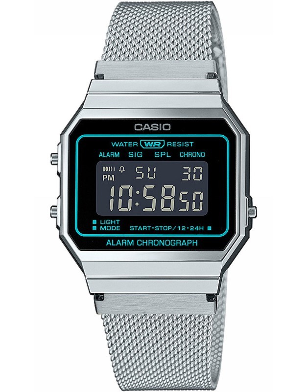 Ceasul de mana Casio pentru unisex are mecanism quartz si este potrivit stilului casual. Carcasa este din inox si are diametrul de 35 mm iar cureaua este confectionata din inox. Cadranul are display digital si geamul foarte rezistent realizat din cristal mineral cu etanseitate (rezistenta la apa) de 3 atm.