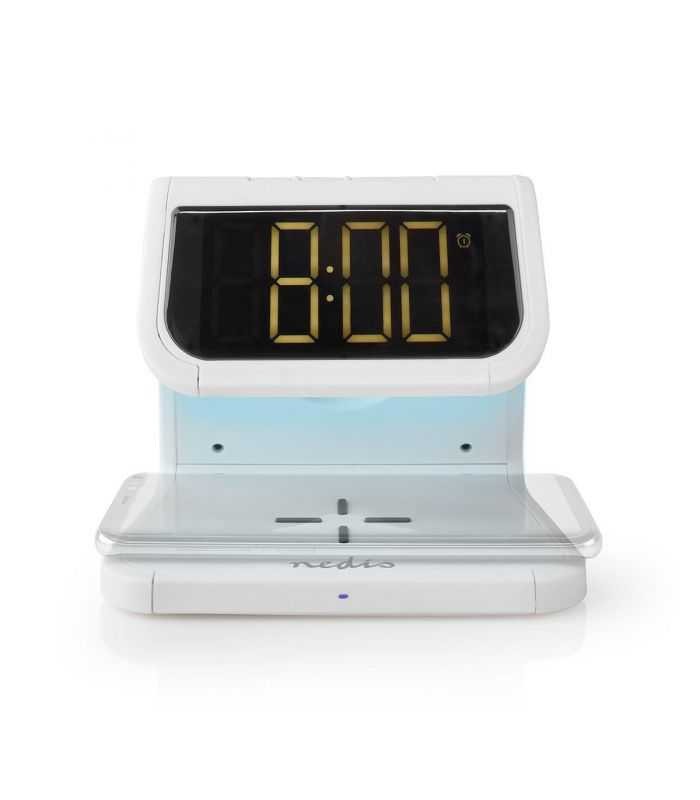 Ceas cu alarma Nedis incarcator wireless Qi lumina multicolora alb