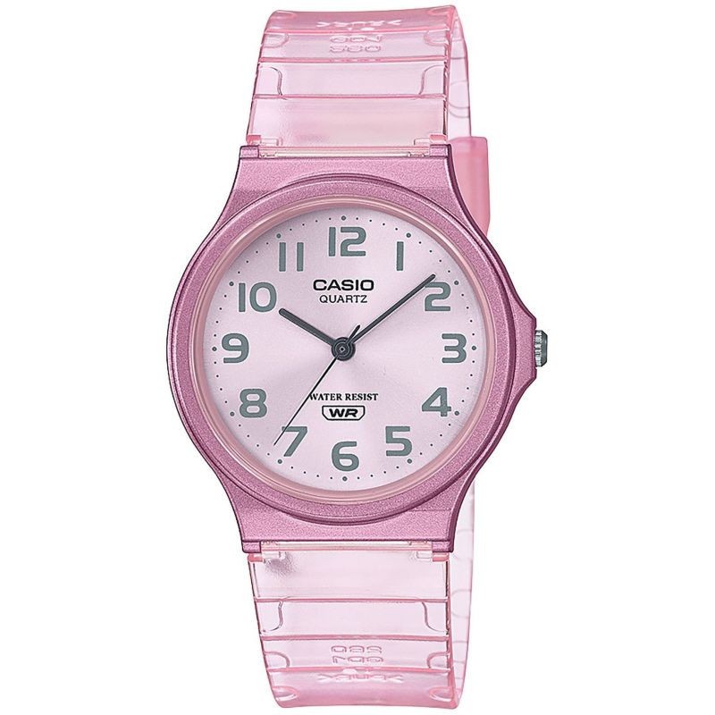 Ceasul de mana Casio pentru femei are mecanism quartz si este potrivit stilului casual. Carcasa este din rasina si are diametrul de 35 mm iar cureaua este confectionata din rasina. Cadranul are display analog si geamul foarte rezistent realizat din plastic cu etanseitate (rezistenta la apa) de 3 atm.