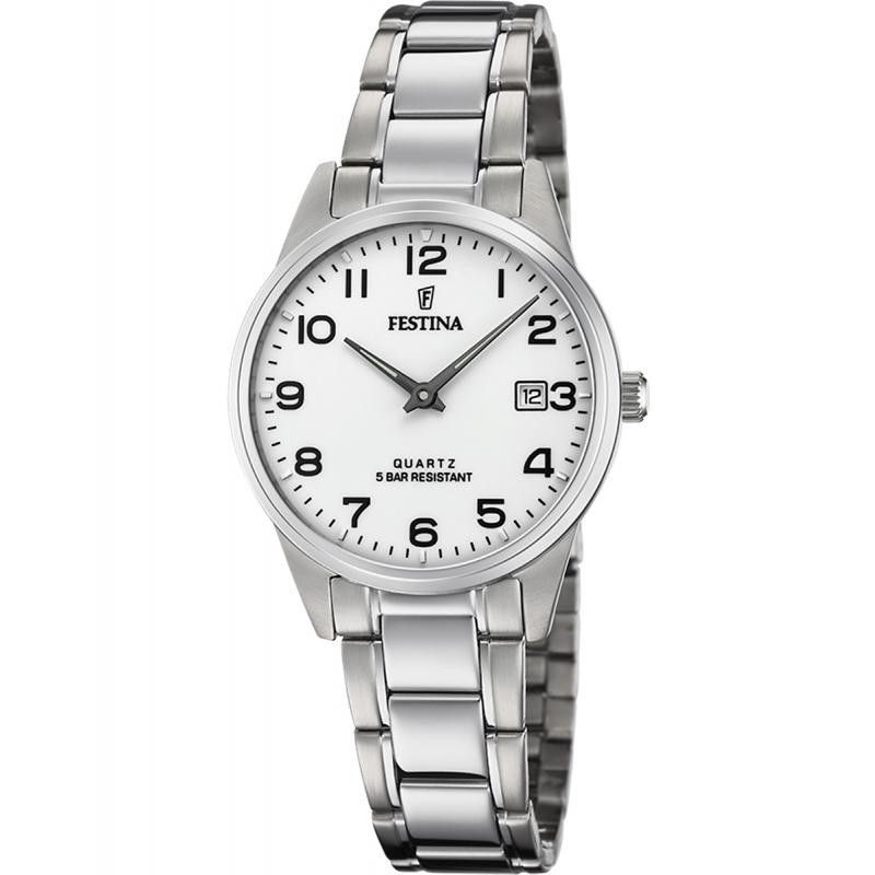 Ceasul de mana Festina pentru femei are mecanism quartz si este potrivit stilului casual. Carcasa este din inox si are diametrul de 31 mm iar cureaua este confectionata din inox. Cadranul are display analog si geamul foarte rezistent realizat din cristal mineral cu etanseitate (rezistenta la apa) de 5 atm.